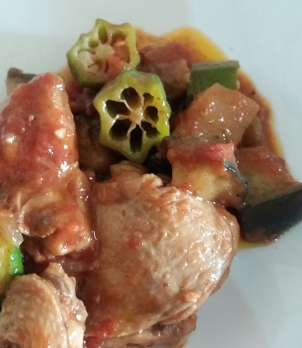 夏野菜とチキンのトマト煮からリメイクパスタ