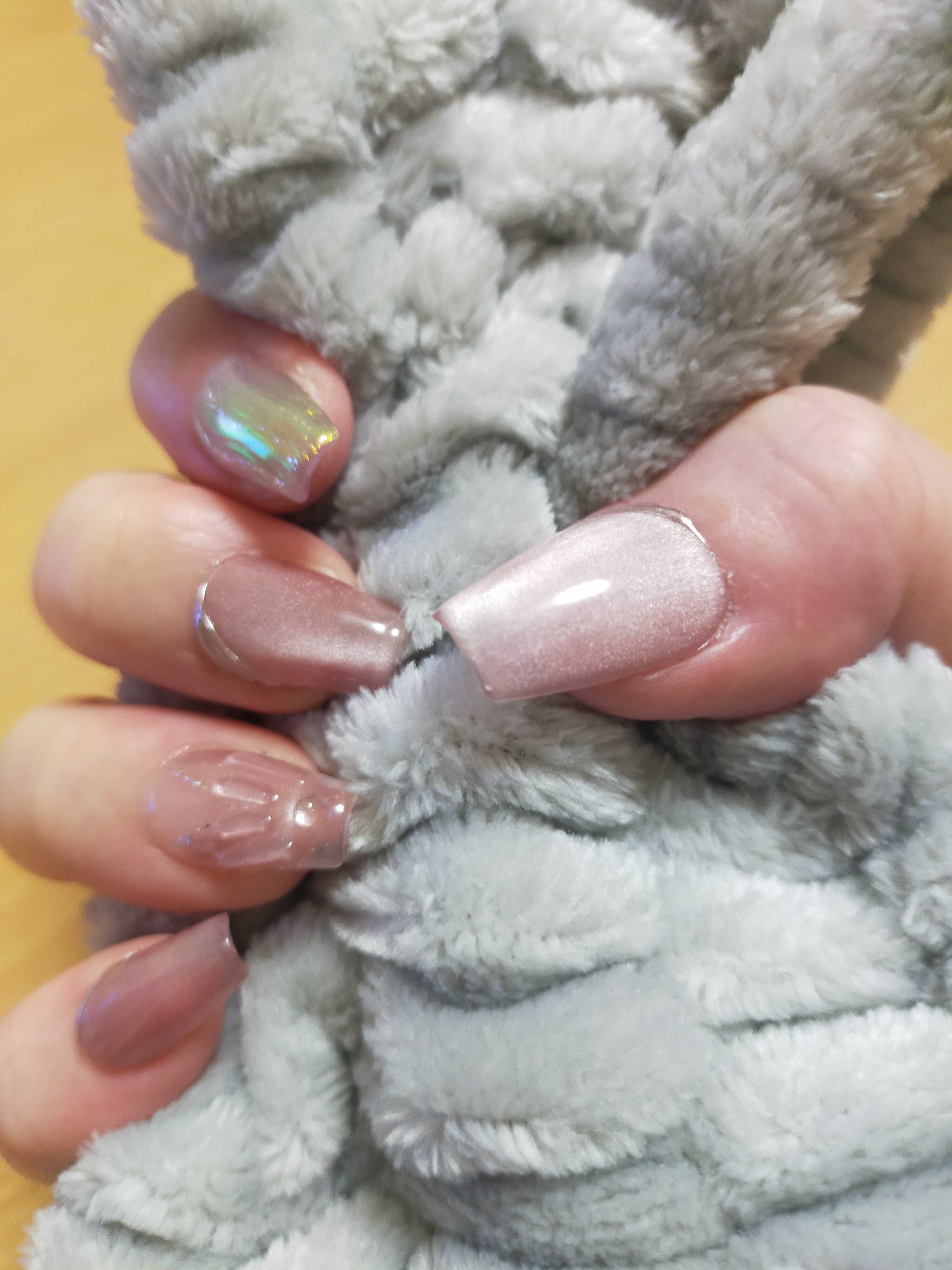 くすみピンクベージュ×オーロラパウダー*春っぽツヤ感ネイル【セル…