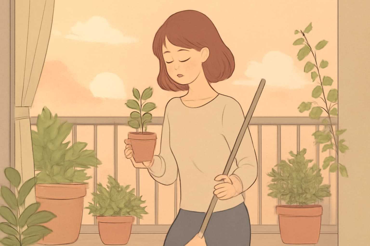 朝活を楽しもう!近所の視線を気にせずベランダ掃除と植物の手入れを…