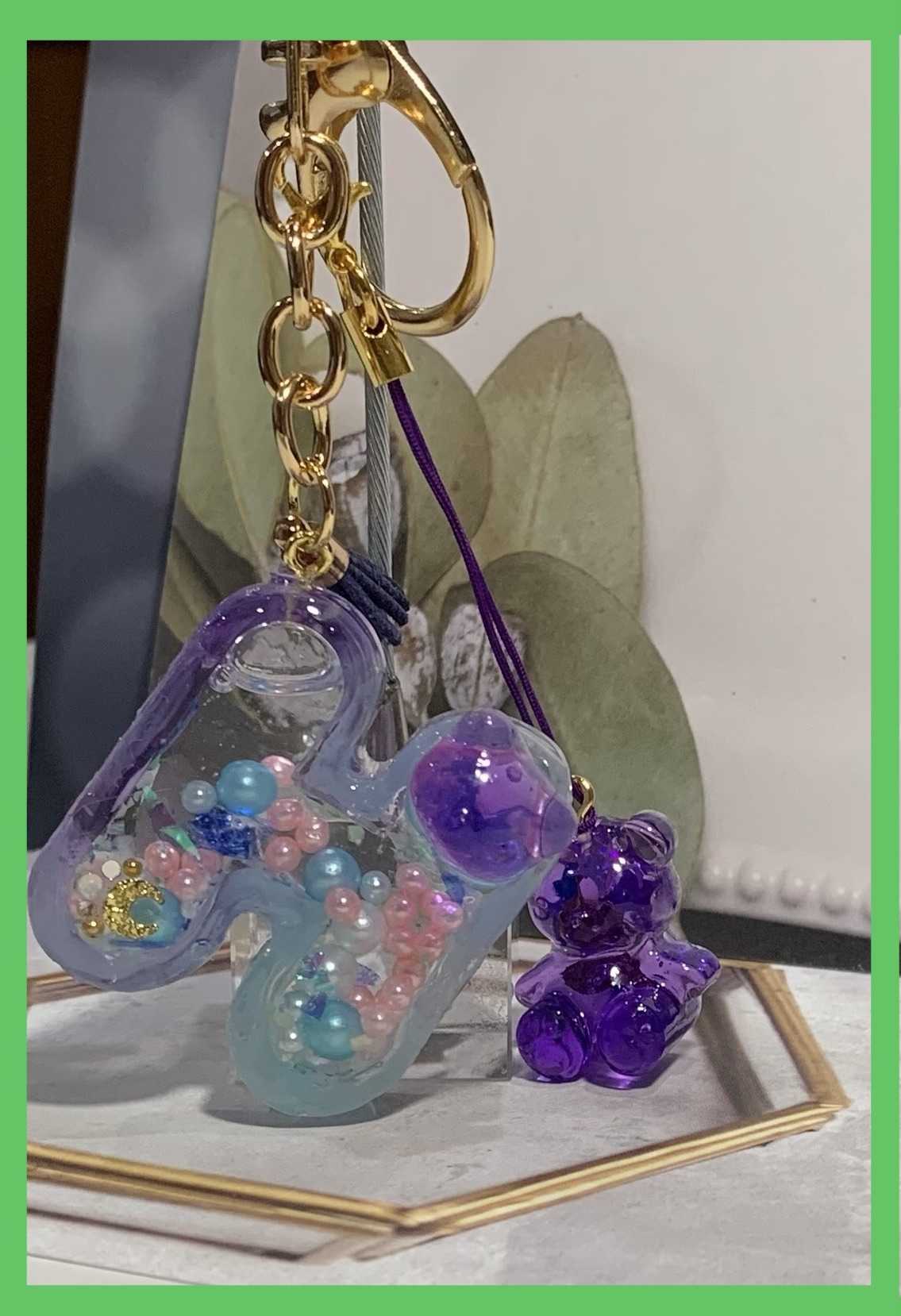 オイル入りシャカシャカシャカレジンイニシャルキーホルダー🧸