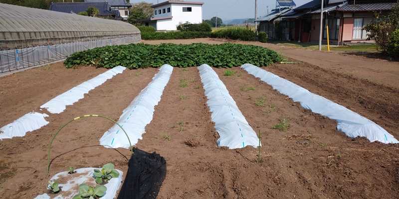 いちご・90日白菜・三太郎大根・葉物野菜の畝作り