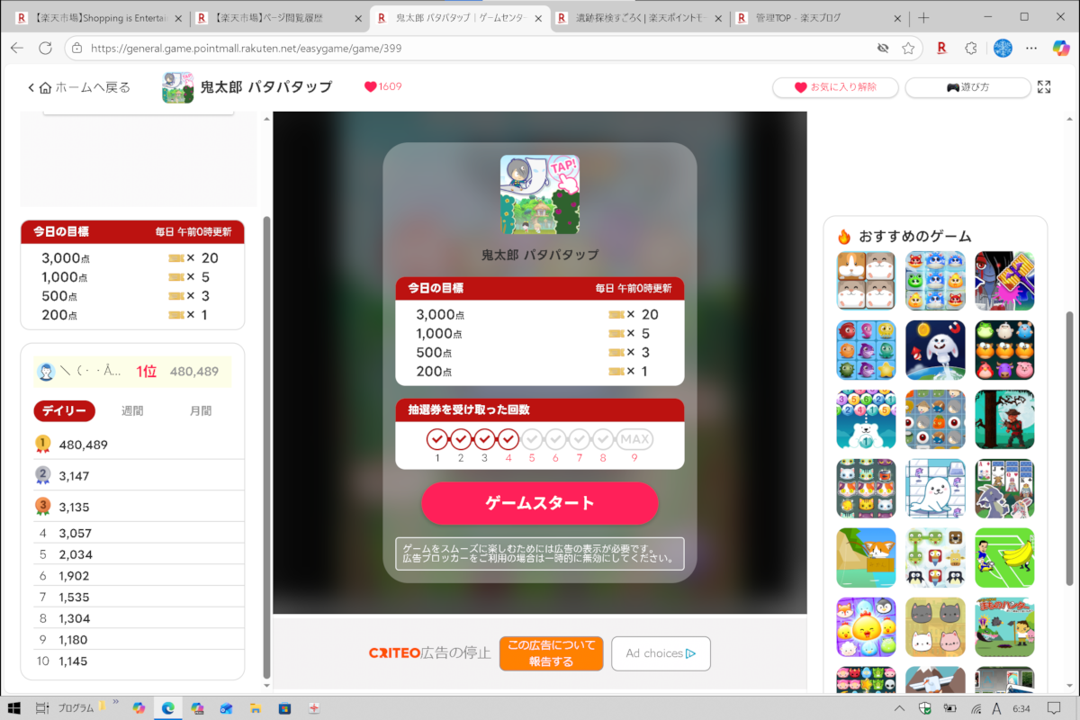楽天ポイントモールでゲームをプレイしてジャンジャンポイントを稼ぎたい!