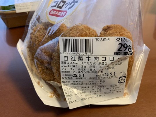 商品研究 「ヤオコー」の「自社製牛肉コロッケ」3個入り本体価格298円を試食