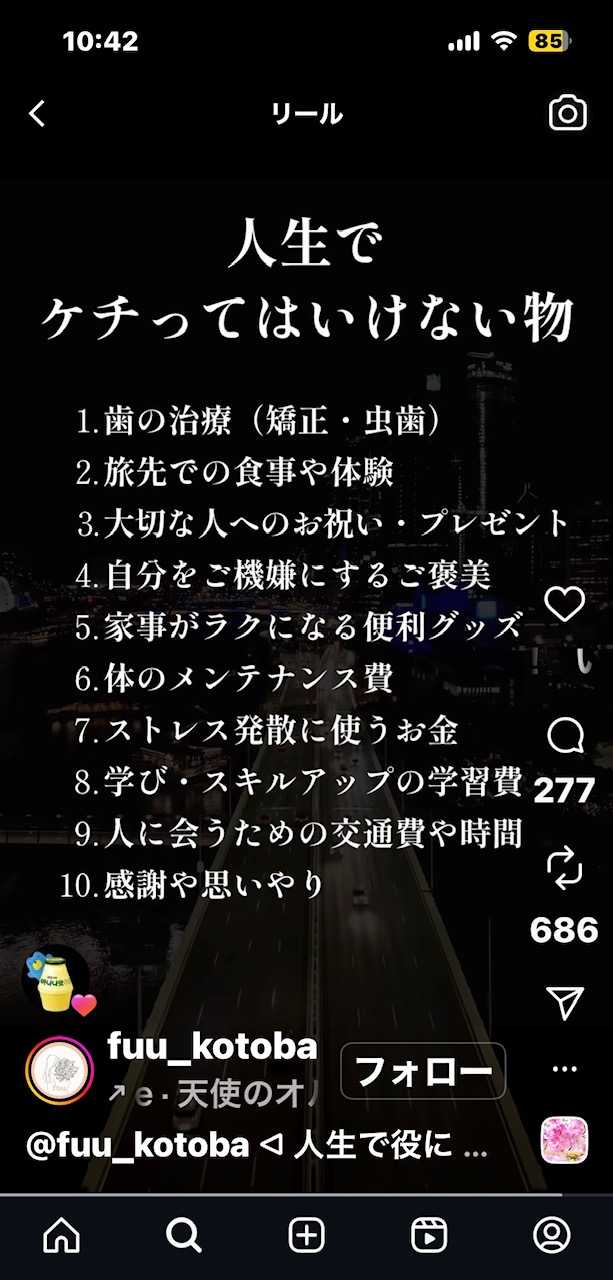 Instagramで「人生でケチってはいけない物」というポストを見た。 …