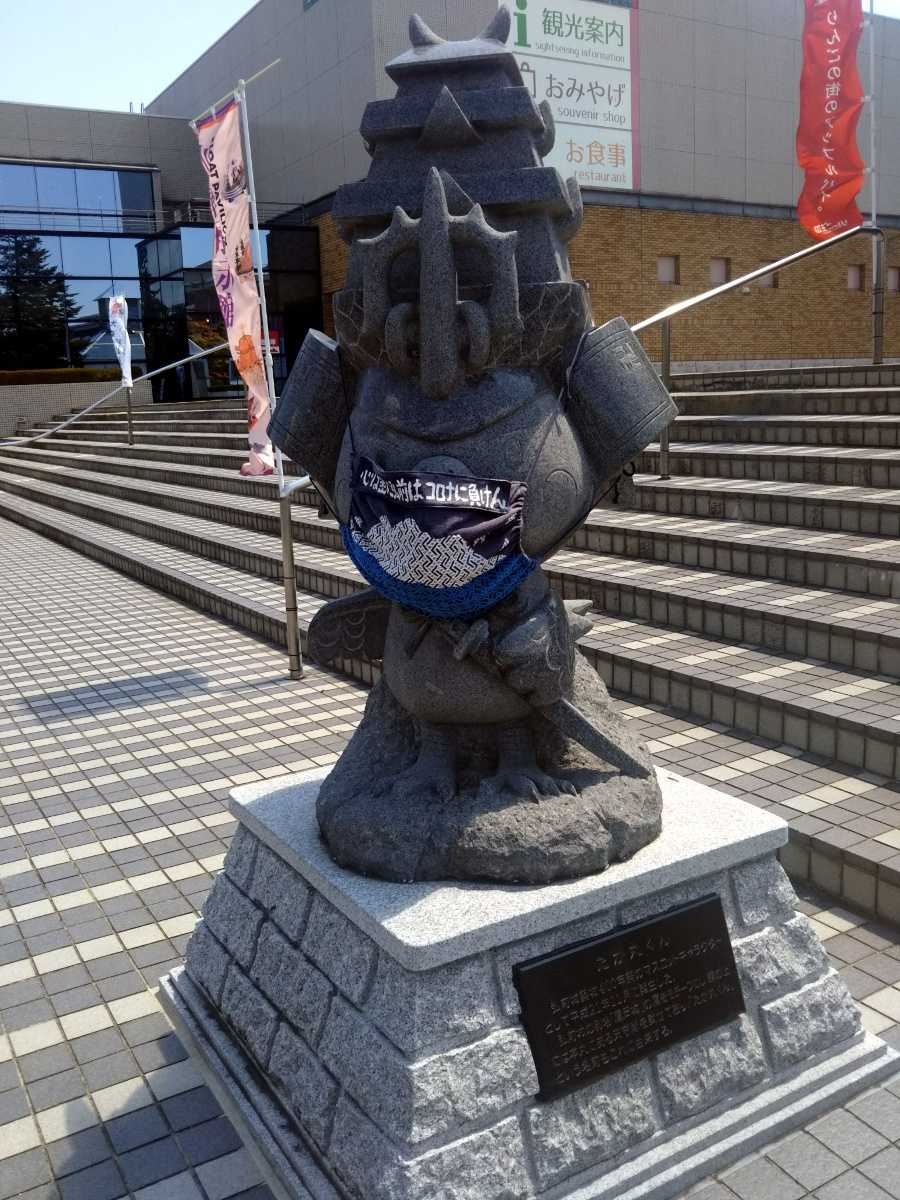 「心は密に 弘前はコロナに負けん」!たか丸くんマスクこぎん刺し