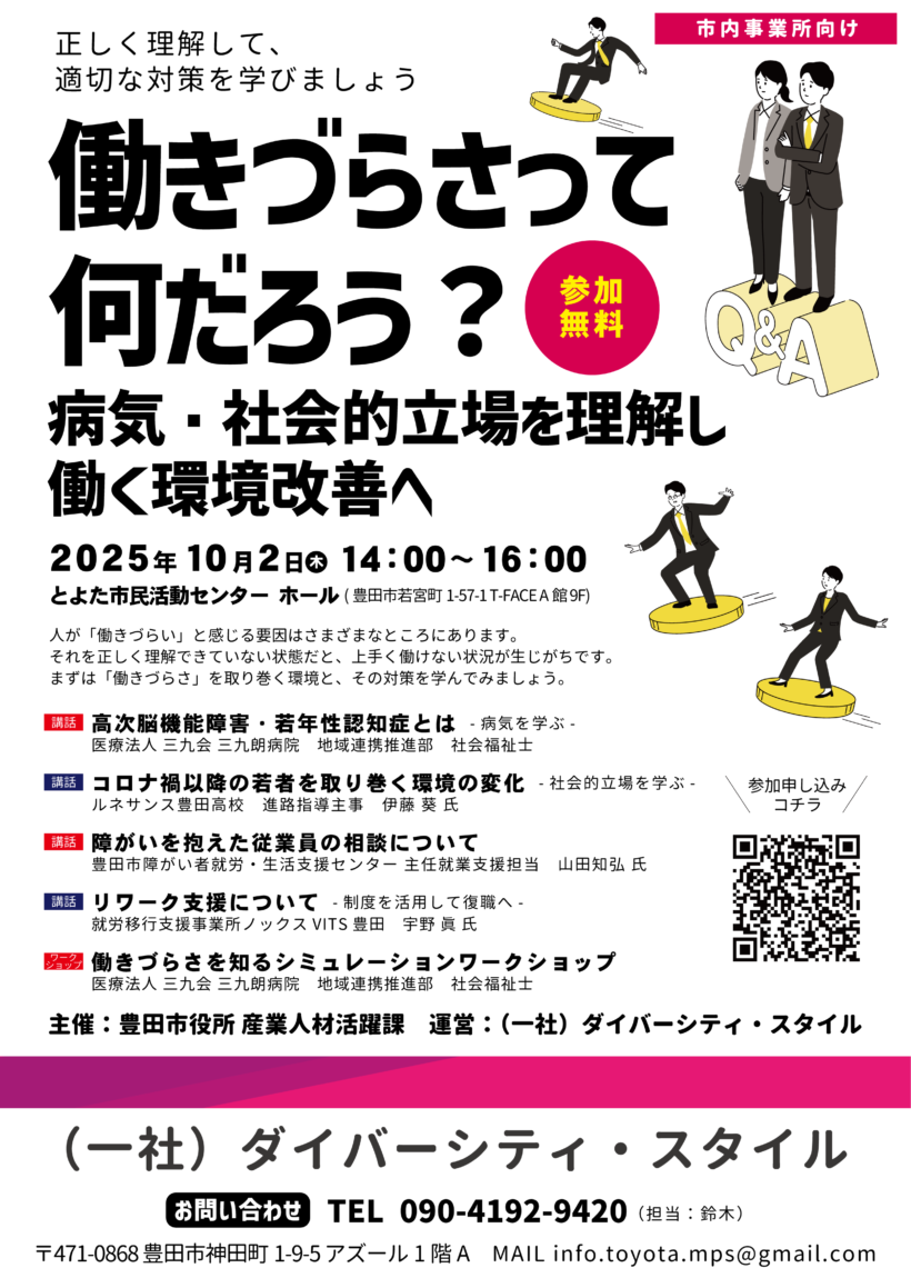 働きづらさって何だろう? 10/2 豊田市で参加無料セミナー開催