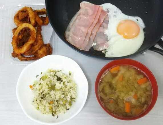 日曜日の朝ご飯は目玉焼きとマカロニグラタン