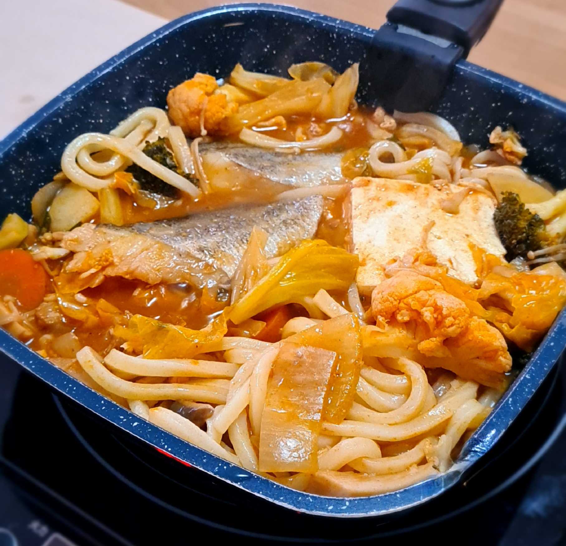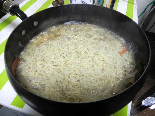 昼食は蕎麦だけど、" 味噌煮込みうどんの素 " をかけ