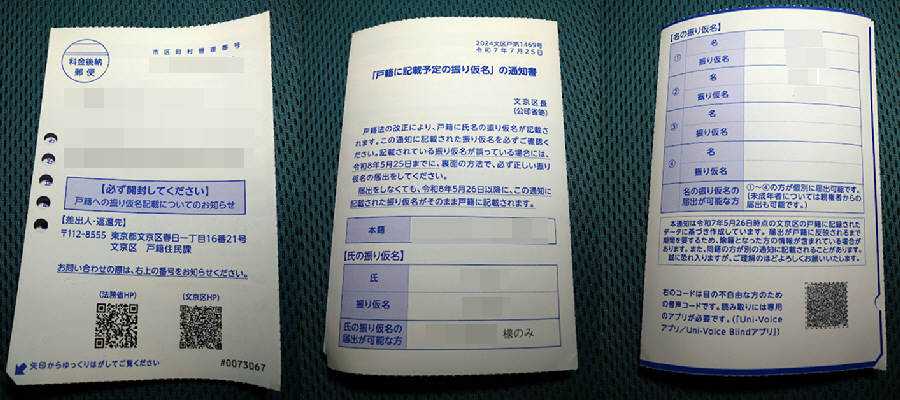 250730?「戸籍への振り仮名記載についてのお知らせ」が来た