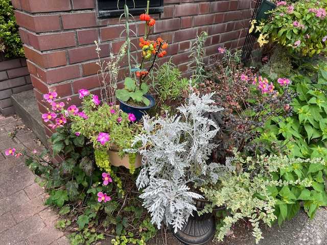 うちの花。秋明菊、ソラナム・パンプキン、ペチュニア、リシマキア、…