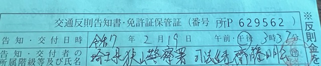 練習の帰り、交差点を右折したら、パトカーに横道に呼ばれてしまった…