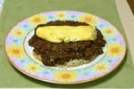 簡単にフライパンでキーマカレーが出来るんです。材料は、ひき肉(なんでもO.K)・・・200gたまねぎ ・・・2/1個市販のカレーフレーク ・・・100g(量はお好みで)フライパンにバターをひいて、たまねぎが透明になったらひき肉を入れて出来るだけひき肉がバラバラになる様に炒める。火が通ったらカレーフレーク(カレーフレークの量は味を見ながらお好みで)と水を交互に加えて煮詰めれば出来上がりです。カレーフレークは焦げやすいので注意して下さい。で、出来ればカレーの上にオムレツをのせると食べるときにカレーがまろやかになって、なお美味しいです。うちは旦那さんと二人暮らしなのでフライパンカレーが丁度良い量なのです。簡単に出来るので作ってみて下さい。