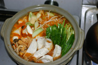 今日は雨が降ってて寒かったので、お鍋にしちゃいました。もちろん私の大好きな「にら」たっぷりです。市販の鍋つゆに1手間加えた辛味噌なべです。コチュジャンたっぷり入れちゃいました。材料は豚ばら肉 ・・・200gくらいかなにら ・・・1束もやし ・・・1袋えのき ・・・1袋しめじ ・・・1袋ネギ ・・・2束餃子 ・・・6個もやしに味がしみこんでかなりうまうまでした。今年の鍋の定番に仲間入りさせたいと思ってます。