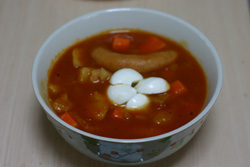 今日のお昼は寒かったのでスープにしました。最近クラムチャウダーにはまっていたので今日は久々にミネストローネにしてみました。これ超簡単。おまけに野菜もたっぷりとれる!ときたら沢山たべないわけにはいかない。でも・・・うちの旦那さんってば中身は食べるがスープは飲まない派。なんでミネストローネを箸で食べるかな・・・で、スープのお供はサンジェルマンで買って来た胡麻パン。まあまあかな。晩ごはんは何にしようかなぁスープ残ってるし・・・