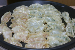 急に、どうしても餃子を作りたくなって、久々に挑戦してみました。実は私かなりの不器用さんなんです・・・だからタネは美味しく作れても包むのが・・・なので今まで1回しか作った事がなかったのですがなんでかどうしても作りたくなり「別に皮が波うってなくてもいい!ようは味だよ!」っと自分に言い聞かせ作ってみました。旦那さんには「ちゃんと包めるの~~??」なんて言われつつやってみたところ・・・自分的にはなかなかだと思うんですが・・・味は旦那さんから「まいう~~」をいただきました。予定以上に食べてしまったので午後からまた作ろうかなぁ。晩ごはんの分が足りないかも・・・