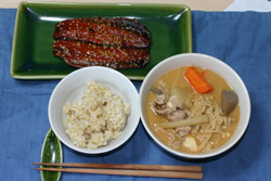 久しぶりに和食のランチです。寒くなってきたので豚汁を作っちゃいました。昨日作ろうと思ってたんですが新聞を見たらガッテンでやるって書いてあったんで今日にしました。番組は楽しく観ましたが、参考になったかどうか・・・いっも観るだけで終わっちゃうんだよな~~って事で今日のランチは和食です。最近はまってる秋刀魚のみりん干しといつもの玄米ご飯。で、珍汁くんです。腹減った~~~早く食べたいです(^-^)が!もうご飯が出来て20分くらいたちますがまだ食べれません。オープン前なのにお客さんが・・・いえいえ、お客さんが来てくれるのはありがたい事なので・・・でも、何故だろうお昼ご飯の時間やお店を閉めて今から晩御飯って時に限ってお客さんが来るのは・・・(それもいつも同じ人・・・)先に食べちゃおう~~(^-^)