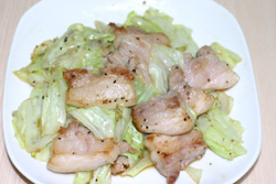 今日じゃなくて昨日なんですが、本っ当にありあわせです。お店への業者さんからの注文が途切れることなく入ってきて買い物に行く時間が無かったんです。お昼ごはんを作る時間も買いに行く時間もなく、仕方なく2日続けてピザを取ったんですがさすがに3日連続は体に悪いだろうと思って何とか作ったのが「豚肉とキャベツの炒め物」です。いつか豚角煮を作ろうと思って買っておいたお肉が役に立ちました。これ本当に簡単です。ごま油をちょっと入れてお肉をしっかりと炒めて、軽く塩、胡椒をして、キャベツを入れたらまた塩、胡椒をしてキャベツの水分が飛ぶまで炒めたら出来上がりです。これにサンマのミリン干しとたまねぎのお味噌汁をつけました。で、今日は旦那さんと買い物に行けました!!1週間分よりちょっと多いくらいの買い物をして来ました。今までは夕方になると、「フンフン」なんて鼻歌を歌いながら買い物に行ってたんですが、最近は忙しくて全く無理なんです。そして、今日の晩御飯は焼肉です。旦那さん曰く今日は贅沢日なんですって。なぜなら今日マッサージ器が来たからだそうです。まぁね、高かったしね。マッサージ器代が払えるくらい発送頑張るよ。でも、私は明日来るエアコンの方が楽しみだよ。だって、今家の中でプチエスキモーなんだもん。寒いよ~~