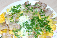 今日は他の方のブログで見かけた「とん平焼き」をヒントに1品作ってみました。豚ばら肉をちょっと長めに切ってフライパンで両面焼いて塩、胡椒をふって、そのお肉の上にたまごを落とし菜箸でひろげ、また塩、胡椒で味をつけ、本当ならここでひっくり返すんですけど旦那さんの希望でひっくり返さずにねぎを上にのせてたまごに火が通ったら出来上がりです。これ結構美味しかったです。旦那さんが「これ、うちの定番にしようよ」と申しておりました。で、もう1品が「もやしとにらのオイスター炒め」これ、超簡単です。にらともやしを炒めてオイスターソースをかけてさらに炒めて水分が飛んでしんなりしたら出来上がりです。これにお昼の残りの豚汁をつけて今日の晩御飯でした。んん??あれ??トントンになっちゃった??