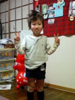 年明け、初めてのヨガに行ってきました。今は幼稚園が午前保育なので、いつもよりは短めの1時間コース。もちろん、次男くんもいっしょです。最初は瞑想して精神集中から始まるんですけど、次男が膝にすわったりしてるので、なかなか集中はできません。体をのばしたり、四つんばいになったり。四つん這いになってると、必ず、次男がそのうえに乗ってきます。1週間に1回なんですけど、日々体を動かしていないので、これを書いてる夕方にはかるーく筋肉痛が・・・次男くんがいっしょなので、リラックスには程遠いヨガだけど、いつか、ひとりで参加したいと思う今日この頃です。お邪魔虫の次男くん。English Here
