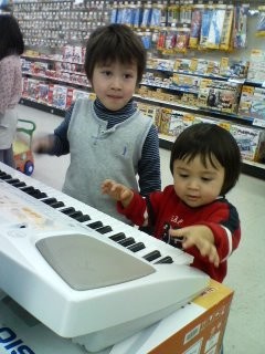 まだまだ、ききとれる意味のある言葉のない次男くん。長男がクリスマスにもらったサングラスがお気に入りです。そして、最近のクリスマス、お年玉、お誕生日とプレゼントが重なった子供達。念願のボウケンジャーのロボットです。(全部ではないですけど。そして、来月からは、ゲキレンジャーとやらに変わるらしい・・・)そのなかで、「ズバーン」というロボットがいます。剣にも変身するし、「ズバ、ズバ、ズンズン、ズバ~~ン」と、しゃべります。そして本題。なかなかしゃべらない、次男くん。最近「シュバーン、シュバーン」と、ズバーンで遊びながら話します。しゃべれるのが、「ズバーン」と「あんぱんまん」いつになったら、ダダ、まみいって言ってくれるのかしら・・・English Here