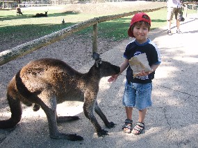 里帰り旅行記の続きです。ダダの両親の家では、まったり、のんびり・・・でも、子供達がちょっと退屈そうだったので、車で5分くらいのところにある「バララット・ワイルドライフ・パーク」に行ってきました。長男が生まれてから5回目のオーストラリア。ここのパークも実家から近いので、2回来たことはあるけれど、次男が生まれてからは初めて。園内にはカンガルーがいっぱい。それも普通にその辺にいるので、えさをあげたり、なでなでしたり。次男は、気にはなるけど、逃げ腰で・・・結局園内にたくさんいた鳩をおいかけて喜んでいました。エミューもおとなしかったです。初めて野生のエミューに遭遇したとき、サンドイッチを奪われた経験のある私。ちと苦手です。オーストラリアといえば、やっぱりコアラかな。おとなしそうだけど、凶暴らしいです。楽しい時間を過ごした子供達。この日の夜、長男発熱・・・発疹が・・・つづく。English Here