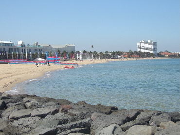さてさて、今日は何日目?3月19日だからオーストラリア到着後5日目です。いつもそうなんですけど、今回の里帰りでも我が家の滞在にあわせて、仕事をお休みしてくれるダダの弟。どこかに行きたいという予定もなかったので、なんとなく決めて、久しぶりにセントキルダビーチに連れて行ってもらいました。いいお天気だったので、海も青く見えてなかなかきれいでした。ゴールドコーストの海には勝てませんが・・・ちょうど世界水泳をやってた時期で、それにあわせたイベントなんかもやっててにぎやかでした。それに、新しくビーチ沿いにお店もできてて、私が暮らしてた頃に比べると随分かわりました。ここでランチを済ませ、次は「コーリングウッド・チルドレンズファーム」に行きました。ここでは、羊、ヤギ、豚、馬、牛、アヒルなど、農園って感じの動物たちと触れ合えます。2年前にも一度行きましたが、当時生後5ヶ月だった次男。目の前で動く動物たちに、ハイテンション。キャーキャー言いながら、追いかけていました。動物さんたち、いい迷惑でした。暑い日だったので、体力もつきてきた子供達。帰路につきました。English Here