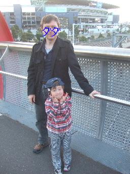 いよいよ、メルボルンに向かいます。ゴールドコーストから、メルボルンまでは、カンタスさんは飛んでないので、コードシェアをしている、JET☆(ジェットスター)という、航空会社の飛行機でした。最近、知られてきてる航空会社で、サービスを抑えて、格安料金を設定してるらしいです。なので、機内での食事や飲み物は欲しい人が買うという、新幹線みたいな感じです。特に、サービス悪いなんて感じもなく、おねむモードでぐずぐずしてた、次男のお相手してくれたりと、なかなかいい感じでした。国際線は、関空からブリスベンとシドニーに飛んでるので、次回、使ってみてもいいかなあ、なんて思ってます。ダダ曰く、そろそろ、成田からも飛ぶかも?なんて言ってるので、そうなると絶対使うんですけどね。そして、メルボルン到着。いつもなら、弟が迎えにきてくれるのだけれど、今回は、翌日に控えたバプチズム(洗礼)の準備が忙しく来れないので、ということで、タクシーを手配してくれていました。今日からお世話になる、ダダの弟の嫁の実家に向かいます。これが、とっても大きな家で、同じ建物の中ではあるんですけど、本家をいったん出て、ガレージを通って、ドアを開けるとキッチン、シャワー、リビング、ベッドルームがあって、洗濯機と乾燥機も備えてある、部屋を借ります。朝食や、飲み物も準備してくれてて、ペンションみたいな感じです。もちろん、本家(嫁の両親と犬が住んでます)にも自由に行ったり来たりしてもいいので、楽しく過ごせます。一緒には住んでないけれど、6歳と3歳の孫がいるので、おもちゃもいっぱいあって、子供達は退屈しません。滞在場所の紹介はこれくれいにして、この日の夜、ダダと長男、ダダの弟は、AFLを見にいきました。フッティなんて言ってますけど、一般的なフットボールとは少し違って、オーストラリアでのフットボールです。ダダの大好きな、カールトンといチームが、決勝にでるというので、見にいきましたが・・・長いんです。試合が。30分ずつ4回戦うし、ハーフタイムなんてのもあったりした。半分くらいで、長男ぐずぐず言い出したらしく、早々に帰ってきました。その間、私と次男は、嫁家族とディナー。早々に、借りてる部屋に引き上げて、のんびりすごしました。English Here