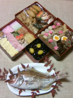 毎年ですが、姉手作りのお節に、義兄が炭火で焼いた鯛。母手作りの白味噌のお雑煮を頂いて今日は過します。