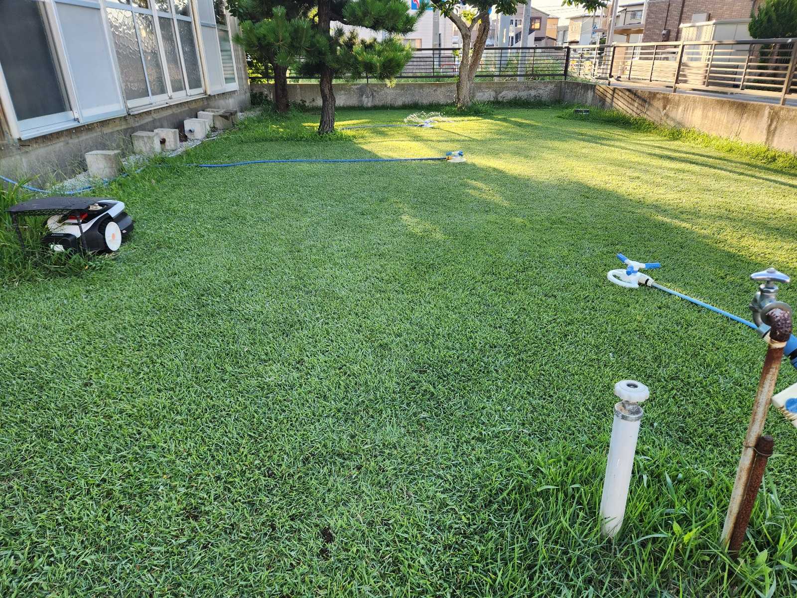 こんな写真が出てきました(苦笑)2年前の9月上旬!!!うわ~~って感じです。 一応散水ホースは置かれてました…(苦笑)。昨年、芝生再生に真剣に取り組むこととし、雑草で芝生がなくなっていた場所に1坪ほど芝生を移植しました。昨年の9月の写真ですね!1泊2日+3泊4日の出張の後の9月3日の芝生です。今年の芝生は、多分過去最高では!?(笑)芝刈りロボを4日動かしていなかったので、もふもふになってます。ロボが通らない際の部分は、結構伸びてます。ついでなんで、3年前の9月も探してみました。やはり出張で土日休みなし。夜に灯をつけて芝刈りをしてたようです。芝生を刈ると、辛うじて芝生の体裁を保ってるように見えますが、雑草だらけ…(苦笑)3年前と言えば…。3年前、祭りで上京し、その後一泊二日の予定でESWL。(←なんか乗り気がしなかったんだよな~(苦笑))その結果、術後に腎被膜下血種になってしまい、TVで見るピッピッと音のする機械が置かれ、体のあちこちにセンサーが付けられ、24時間の止血剤の点滴を4日。この日で止まらなければ輸血ってところで出血が止まったらしい…。その後、長期入院を余儀なくされました。これ以降、体に様々な変調をきたすことになります…。血を失うってのは、よくないんだとつくづく思いました(苦笑)。
