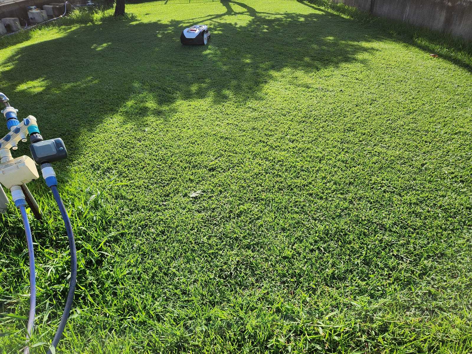 芝刈りロボを4日動かしていなかったので、もふもふになってます。