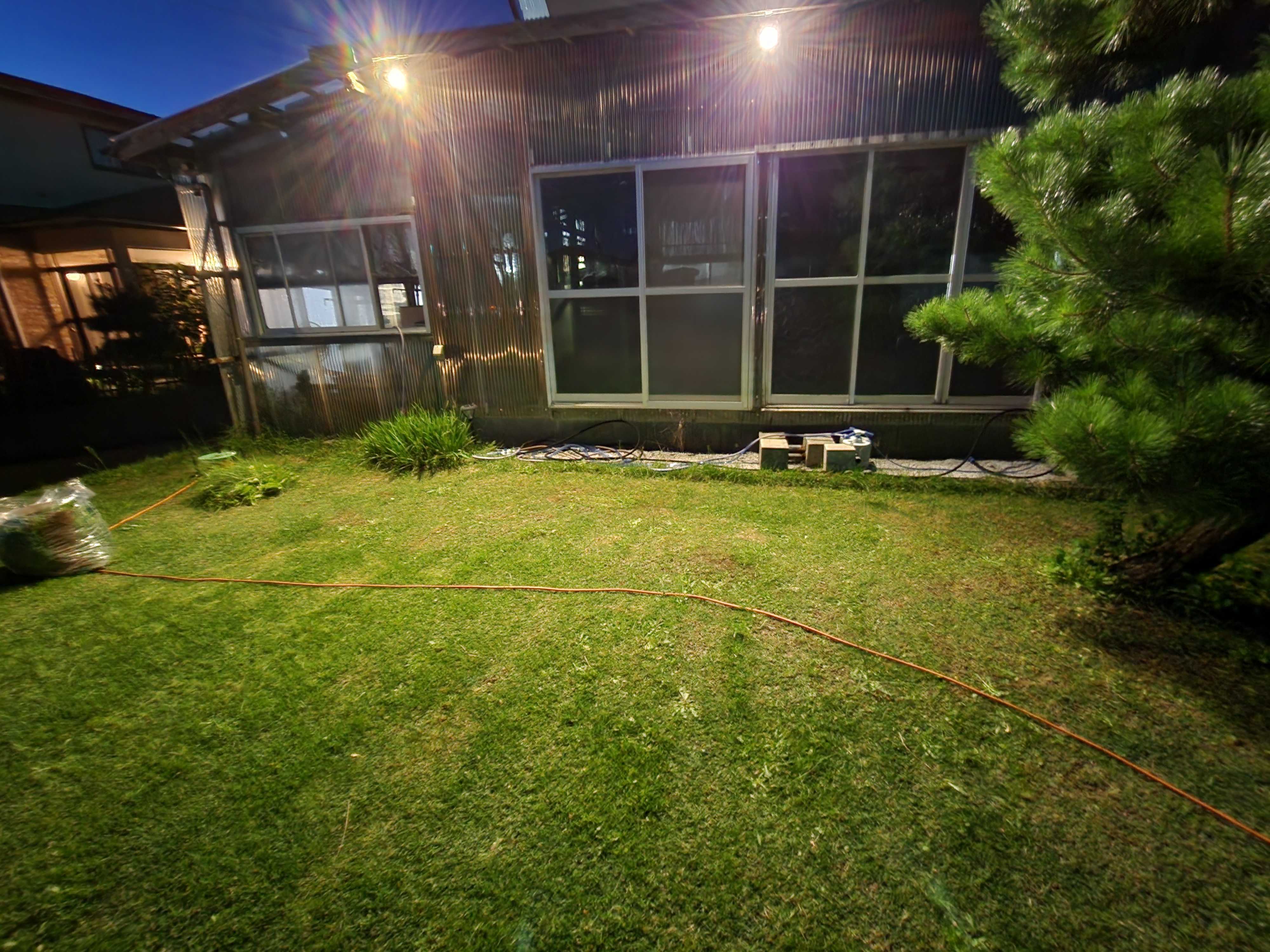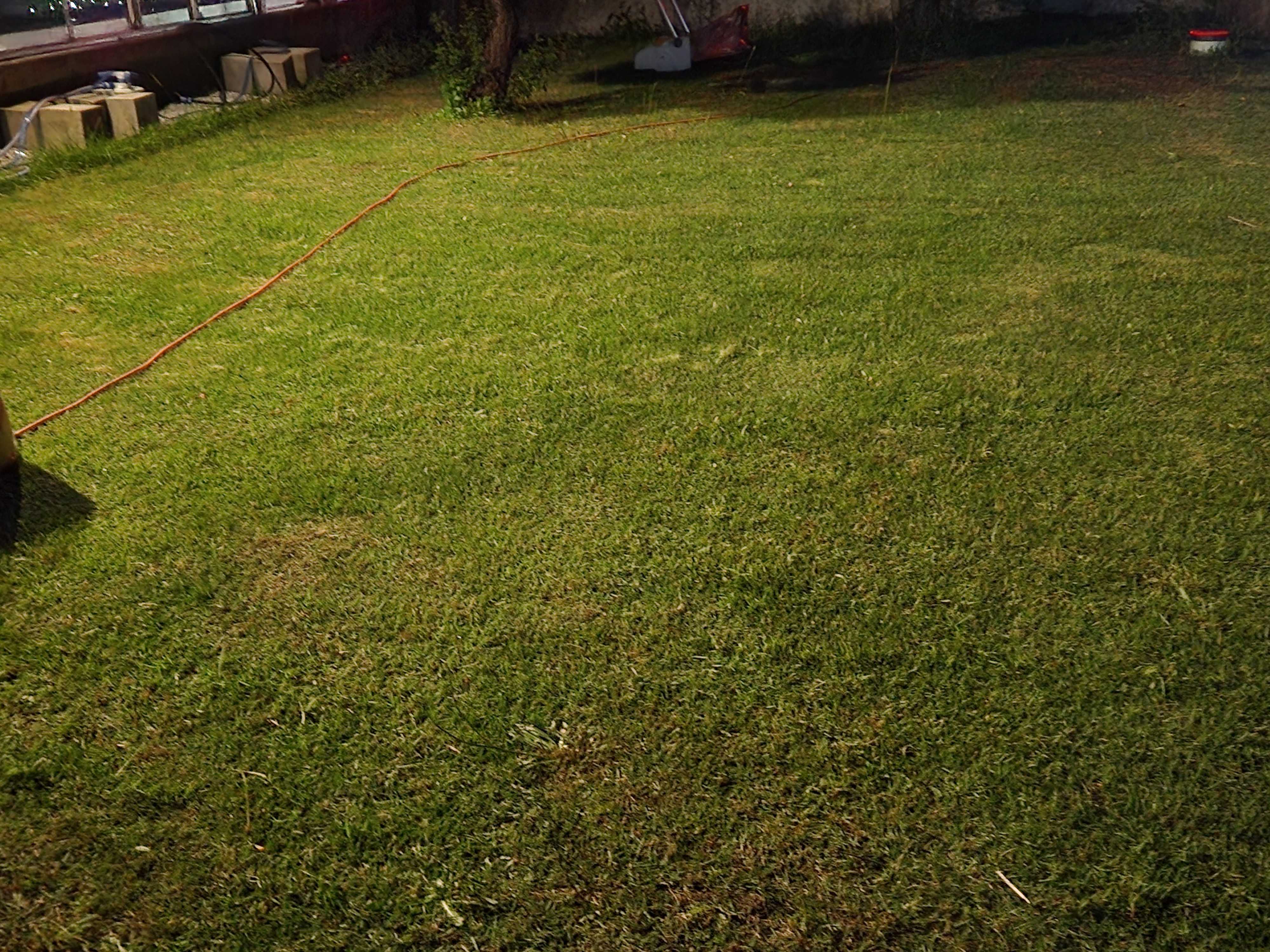 やはり出張で土日休みなし。夜に灯をつけて芝刈りをしてたようです。