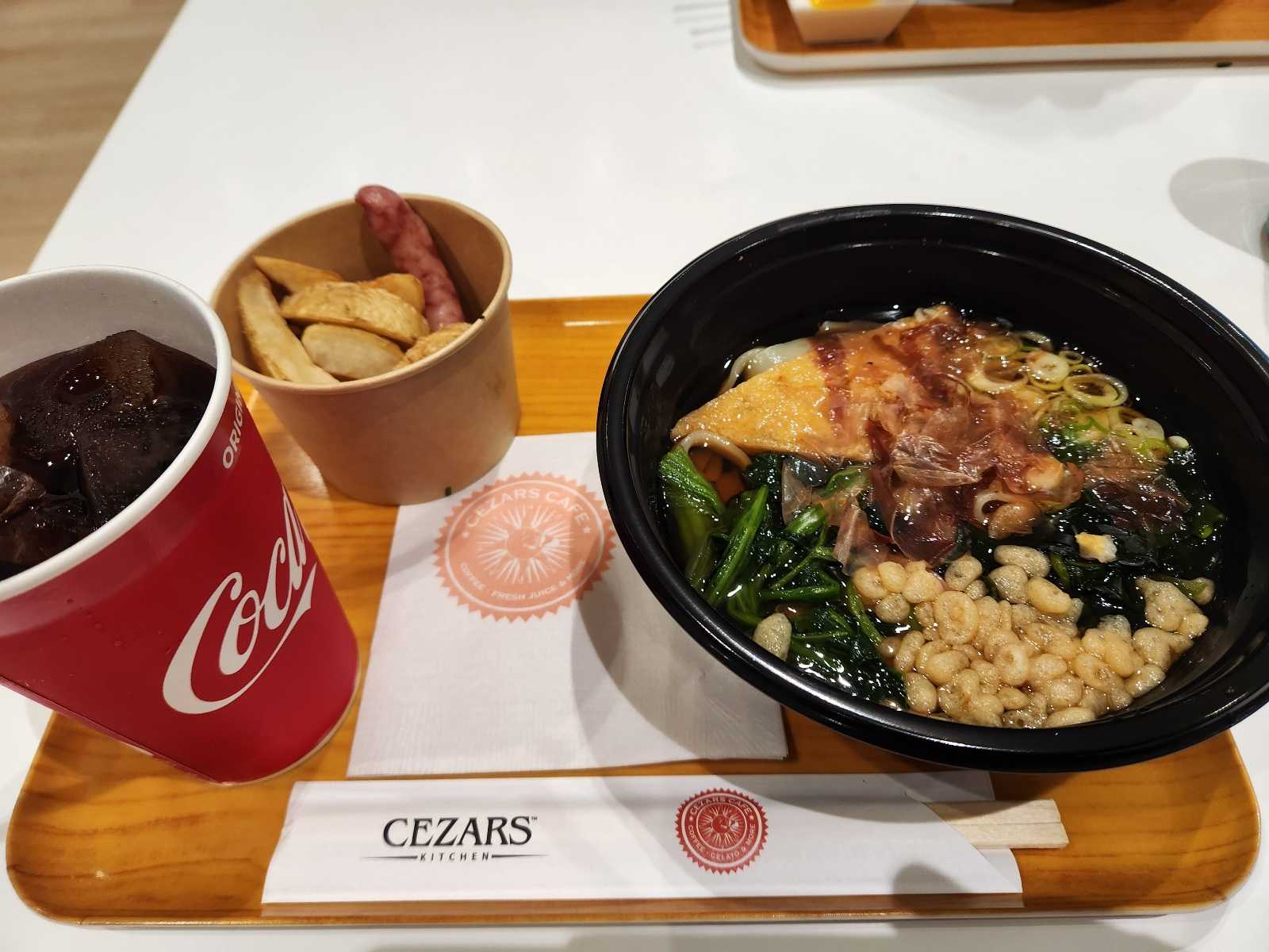 きしめんにコーラとホテト+から揚げ! はてな?なセット(笑)