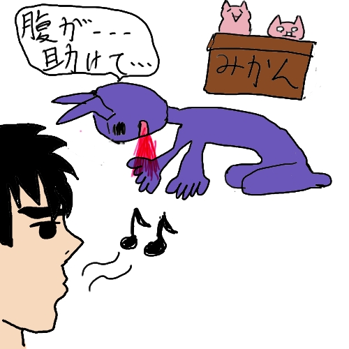 にゃ(´・ω・`)なぁんて、日常生活では言えないよね?でも、僕このおととい改札に定期が引っかかったとき「はにゃ!!」って言ってしまったよ。それも、高い声で。はにゃなら許されるのか??たまに、「はにゃ!!」って言うよ。聞けたらラッキーだね。君ィ!!!!ぬこ「はにゃにゃにゃにゃにゃにゃにゃにゃ!!!!ァ!!!」 (無駄無駄無駄無駄無駄無駄無駄無駄無駄ァ)僕を×しようとした悪い奴「ぐ・・・ぼ・・・ボケガァ!!!(内臓吹っ飛んだ)」結論。『にゃ も はにゃ も多用すべきではない。世界の秩序が乱れてしまう。』う~~~ん、カオスだねぇ・・・。(意味深)俺おととい鉄拳っていうゲーム、ゲーセン(東京)でやってきたよ。そしたら、いたよ奴が。俺いっつも、デ○ル仁っていうの使うんだけど、そいつにカーソルを合わせて~~全ボタン同時押し!!!そしたら、出たよ奴がぬこが鉄拳のイメージキャラクターぬこそうさ、恐れないで、い~~きるよろこび、たとえ胸の傷が痛んでも~~~アンパン○ン「ぐ・・・この傷はラオウにつけられた傷っ・・・!!」まぁ、本当は出ないけどね(えへ)かわいいでしょ?結構自信作なんだけどなっ!!で、悪魔化させたのがこれデビルぬこどうだっ、闇のパワーがあふれかえっておろう・・・!!!描くのは簡単でしたっ。前のぬこに羽を付けただけですぅ(*^ω^)あと、紋章を付けたのです。ずいぶん印象変るものね・・・(意味深)さぁ、君もレッツプレイ!!(本当にいません)(*´∀`*)