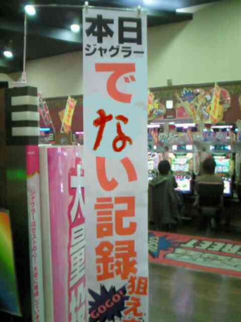 2187回転回しても大当たりが来なくて閉店になりましたが、こんなに、出ないパチスロのアイム・ジャグラーは、マルハン新庄店でしか見た事が有りません!いまだに、この出無い記録は、破られていません!このペカリが見たくて数万円をつぎ込んだ韓国人らしい女性が、ホール係に文句を言っていましたが、ホール係は、ただ、頭を下げて謝るだけでした。大当たりの確率から計算しても有りえない事が、マルハンでは、あるんです!その逆は、決して無いのが不思議です。しかも、翌日、朝一から超・大当たりの連続を期待して、自分が打ちましたが、最終的に1万えん負けました(翌日も、継続的に出ませんでした)