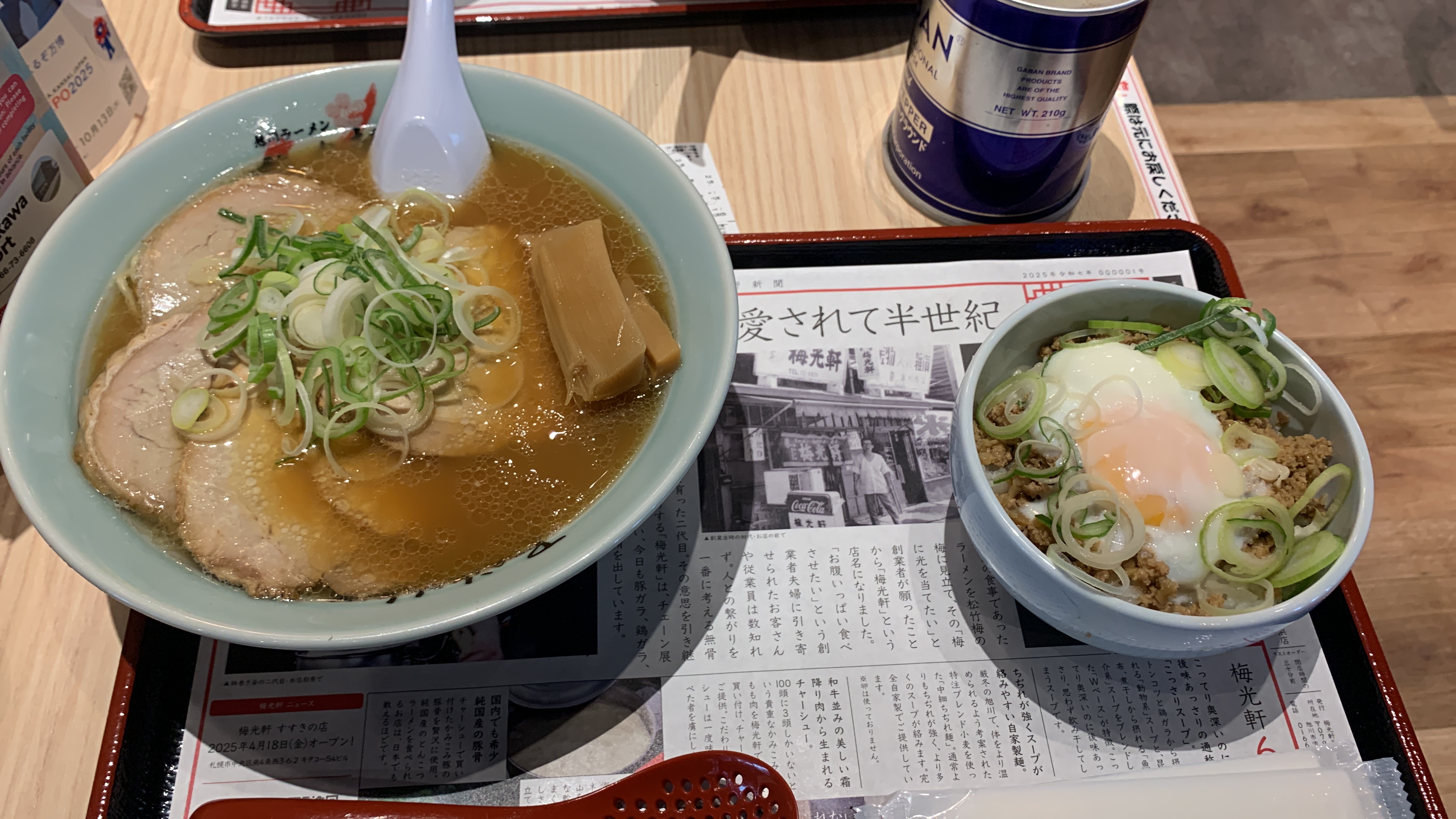 ついこの前ツーリング行こうということで行った先は旭川空港です🎵お昼時にも関わらずひとも空いていて快適です。はいってすぐ上の階に上がると梅光軒と山頭火それにステーキ屋さんやらなにやら今回は梅光軒しかも旭川ラーメンというこで醤油チャーシューを注文しました。旅の相棒は味噌を注文(写真とりわすれました💦)チャーシューはかためでめんまがかなり厚みがありたべごたえがありますサイドメニューはとりそぼろ丼だったかな?相棒の味噌ラーメンのスープをすこしもらい思ったのが、味噌うまいじゃん!旭川だから醤油かと思っていましたが断然味噌おすすめです!ご賞味あれ😯【ふるさと納税】旭川ラーメン 梅光軒自家製醤油&味噌スープセット 各5食(計10食セット)_01425 | ラーメン 旭川ラーメン しょうゆ 醤油 みそ 味噌 ちぢれ麺 生麺 中太 自家製麺 お取り寄せ 旭川市ふるさと納税 北海道ふるさと納税 旭川市 北海道 送料無料