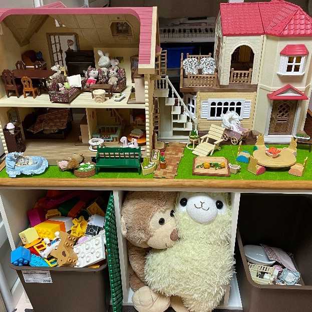 今日は娘たちが体温少し高めだったので1日中家の中にこもってあそびました夫も仕事でまる一日不在なので、ワンオペですワンオペだとごはん作る量も少なくて済むしいろいろ自分のペースで出来るので、結構楽です(笑)特になにもない1日だったけど、唯一こども部屋の模様替えをしました^^数カ月に1回は模様替えをしちゃう飽き性な私ですがその都度こどもたちも大喜びでいつもよりあそび込んでくれるしウキウキしながら遊んでいるのが伝わってきますほんの一部だけですが今日楽しんでいたあそびを載せます!!シルバニアシルバニアのおもちゃは右の家以外はすべて私が使っていたもので右の家は、娘がサンタさんにもらったものです今日は左の家がメインだったみたいシルバニアで遊んでいると、母であるわたしのほうが夢中になっちゃうし娘もとにかく部屋作りが楽しくて、その後のストーリーを楽しむまでには至らないけど、本当に夢のあるおもちゃだな~・・・♪大切にとっておいてくれた母に感謝です!!これ全部新しく買ってたら、相当な金額でした💦(笑)ちなみにこのシルバニアを収納している台は家にあった3段のカラーボックスを二つ並べた上に家にあったコルクボードを乗せて固定してつくりました☆SNSの影響で、100均で人工芝ぽいタイルシールと木目調の壁紙シールみたいなのを張りましたコルクボードの淵があるおかげで、細かいものが落ちないところが最高!!こちらはおままごと♪こどもたちが片付けてくれた直後に撮ってみた(笑)ほとんどこだわりなく、100均や家でもう使わなくなったものをおままごとに使えるようにしています女の子2人だからもうとにかくおままごと大好きっ!!時間さえあればやるよね寝る前はこれをやっていましたボーネルンドのファンタカラーというものなのですがこれは指先も使うし、想像力もつく!そして無我夢中で出来るから集中力もつく!わたしもついつい夢中になってしまうものの1つですがたぶん一番ハマっているのは、1歳半の次女です最後は飽きて、手でわっしゃーと掴んでばらまくけどねこどもと一日中のんびりすごせてしあわせな1日でしたとさ・・・!