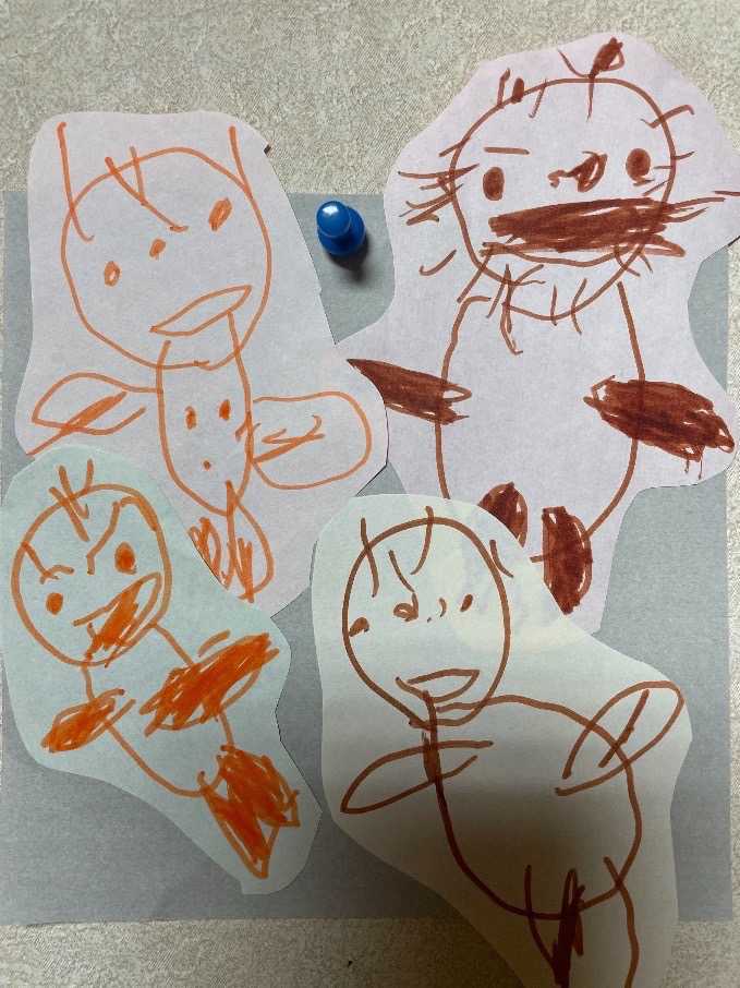 最近パソコンが不調です・・・それはそうと最近長女は製作&おえかきにハマっているのですがいつものように顔を書いていたので「からだは?」と聞くと「からだかく!!」と・・・えーーーすごい!!!手足もちゃんとついてる!!!!人間になってる!!!あれ!ひとりだけ、おっぱいとおへそもある(笑)急にいろんなことができるようになり想像しているものを書いたり作ったり出来るようになりこういう成長に気付いたときの感動がもう・・・!!ぶぁぁぁああぁあぁってあふれて賛否両論あるけど私は「すごーーーい!!」って心の底から褒めまくってしまいます(笑)語彙のなさ・・・(笑)長女があまりにもたのしそうにおえかきするから次女もやりだすのですがやっぱりすぐに飽きて、クレヨンばらまきます(笑)