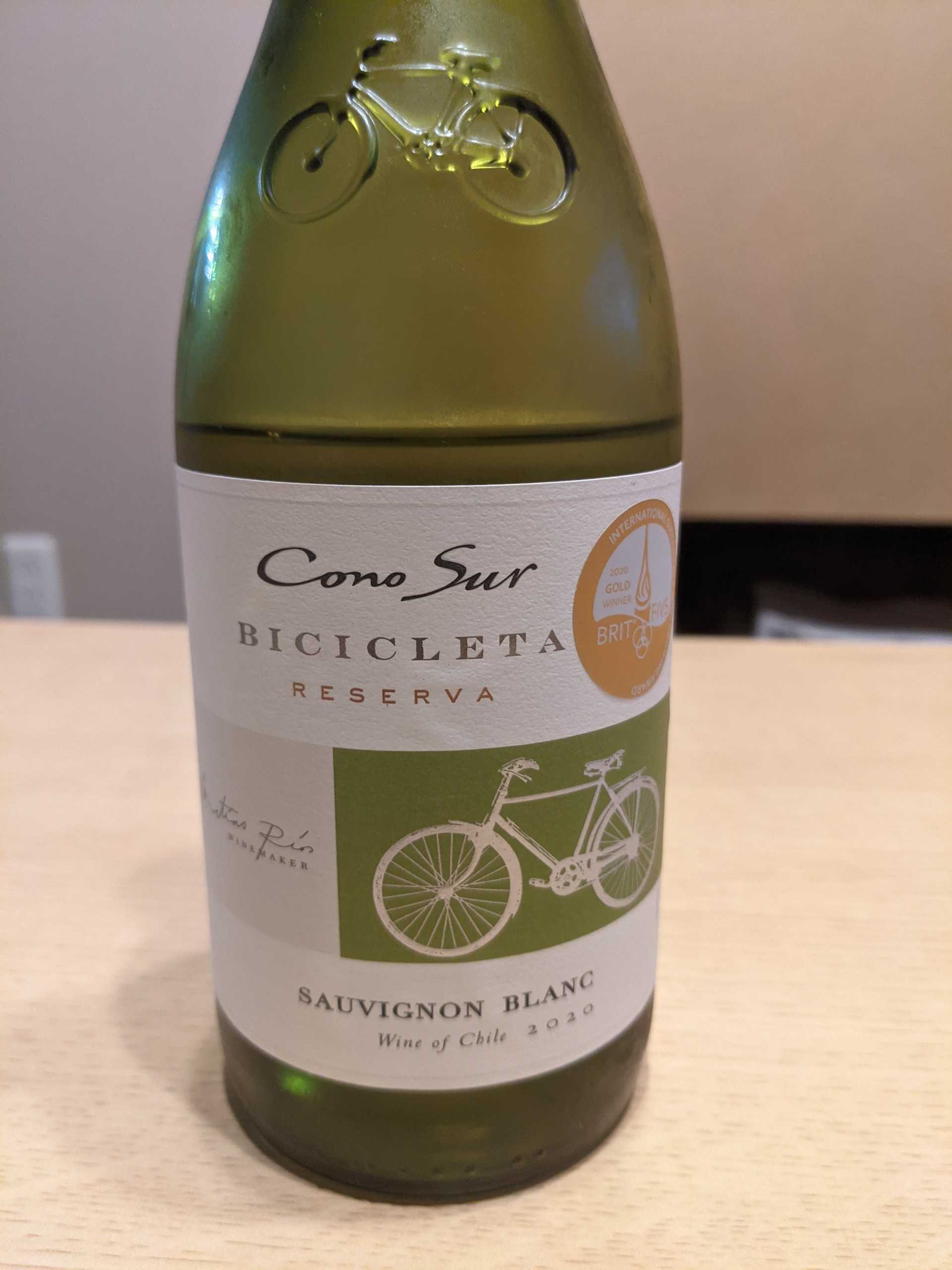 コノスル Cono Sur ソーヴィニヨン・ブラン Sauvignon Blanc ビシクレタ・レゼルバ Bicicleta Rserva 生産年:2020 原産国:チリ Chile チリワイン、コノスルは、以前何度か飲みました。安くて無難な印象です。(チリで一番飲んだのはモンテスですが) こちらのワインは、シャルドネを購入したつもりが、間違えてソーヴィニヨン・ブランを買ってしまったものです。 ブルゴーニュ型の瓶の形で勝手に思い込んだのかもしれません。 よく、チリなど新世界のシャルドネは繊細というよりおおらかで厚化粧のイメージでしたが、SBもSBらしくて厚化粧ですね〜