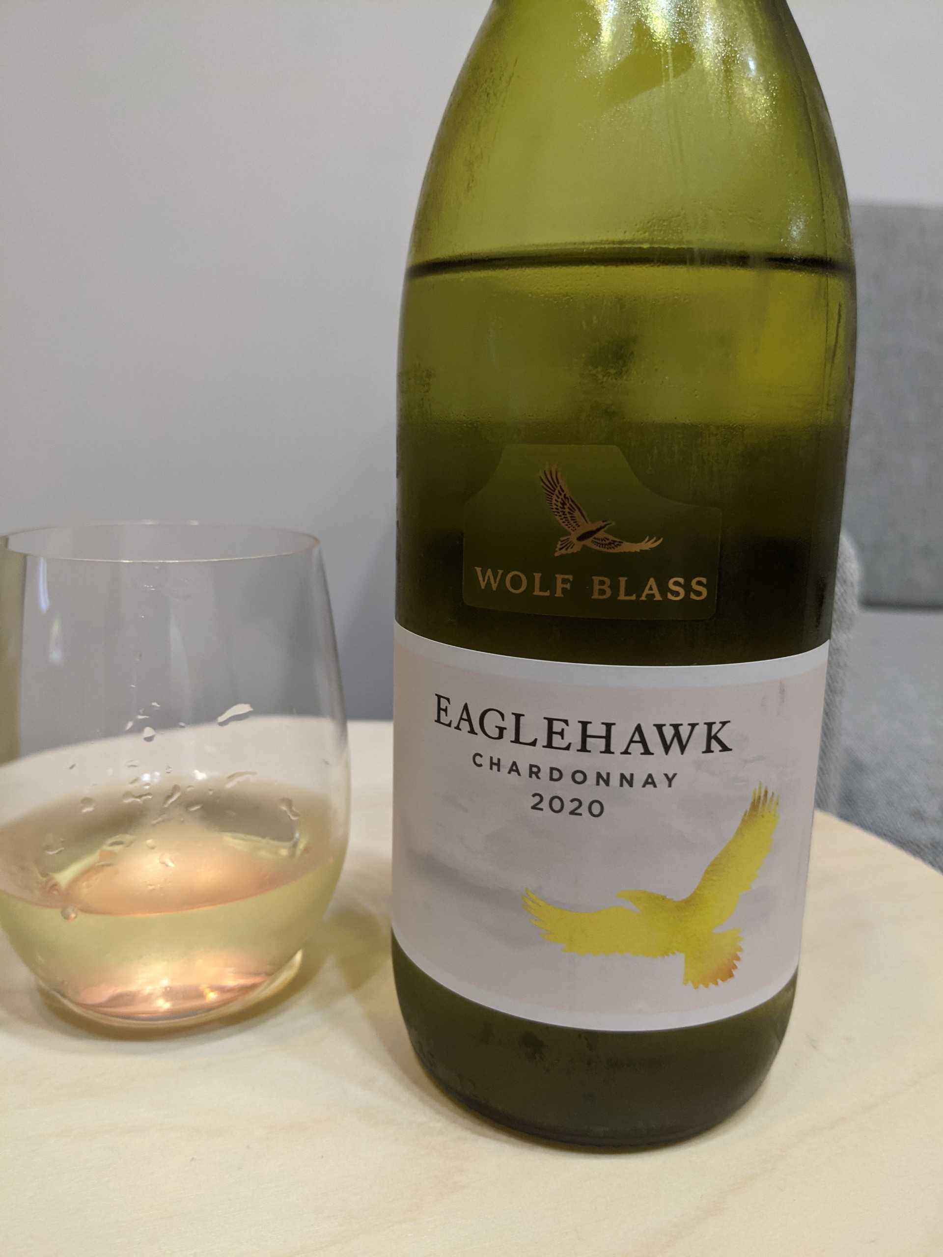 ウルフブラス イーグルホーク シャルドネ 2020 WOLF BLASS EAGLEHAWK CHARDONNAY オーストラリア 先日、間違ってソーヴィニヨン・ブランを買ってしまいましたので、安いシャルドネ酒を手配してきました。 典型的な新世界の陽気なシャルドネ。繊細さはない、クドいですね。 色目もたぶん黄色っぽい…でしょう やはりこのグラスで白ワインは駄目ですね。