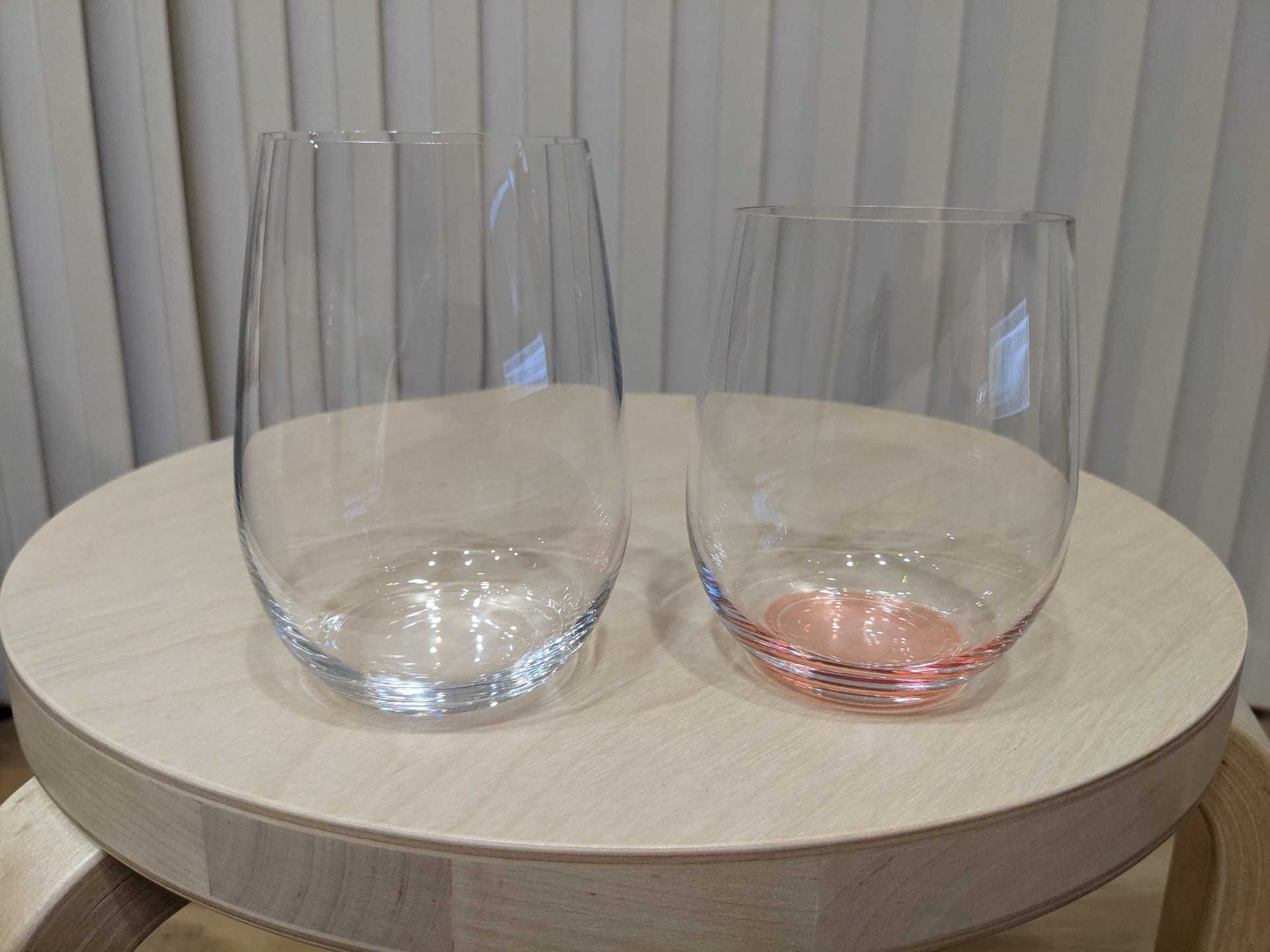 先日割れてしまったリーデル・オーのソーヴィニヨン・ブラングラスが見つかりましたので、代替えで使っていたピンク・オーとともにパチリ ピンク・オーはシャルドネだと思うのですが、ソーヴィニヨン・ブランのほうが細身で飲み口の口径もひと回り小さいです。 どちらのグラスも白ワインや日本酒には合いそうですが、白系の液体には、色がついているのはダメですね。 ソーヴィニヨン・ブランのグラスですが、赤ワインにはなんとなく合いませんね… 赤ワインのときはピンク・オーを使います。