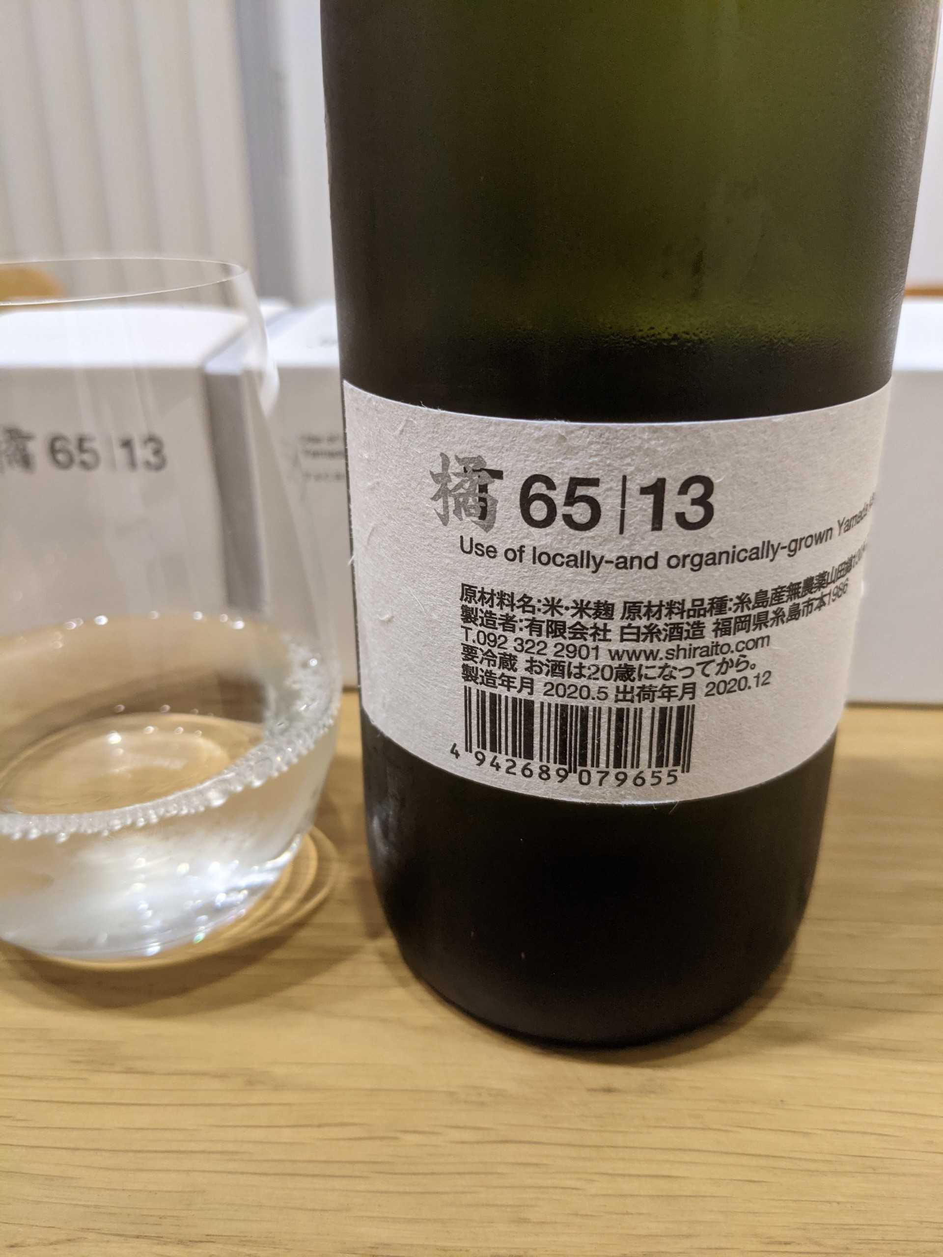橘T65|13 TACHIBANA ✕ SHIRAITO 製造者:有限会社白糸酒造(福岡県糸島市) アルコール分:13度 原材料名:米、米麹 原材料品種:糸島産無農薬山田錦 100% 製造年月:2020年5月 出荷年月:2020年12月 LDHの橘ケンチさんと白糸酒造のコラボ酒 正月前の昨年末にお付き合いで購入したものです。 デザインされた外箱も含めて、ケンチさんらしい商品です。贈答用にいいかもですね。 ラベルにはQRコードがあり画像が見れるとのことですが、3月末までの限定配信らしいです。 精米歩合の記載がありませんが、おそらく65%ですかね アルコール度数が13度と低めで、甘味を感じる飲みやすいお酒です。 橘ケンチさん、他にも新政とのコラボがあるようで、新政っぽいと言われればその系統という気もしてきます。