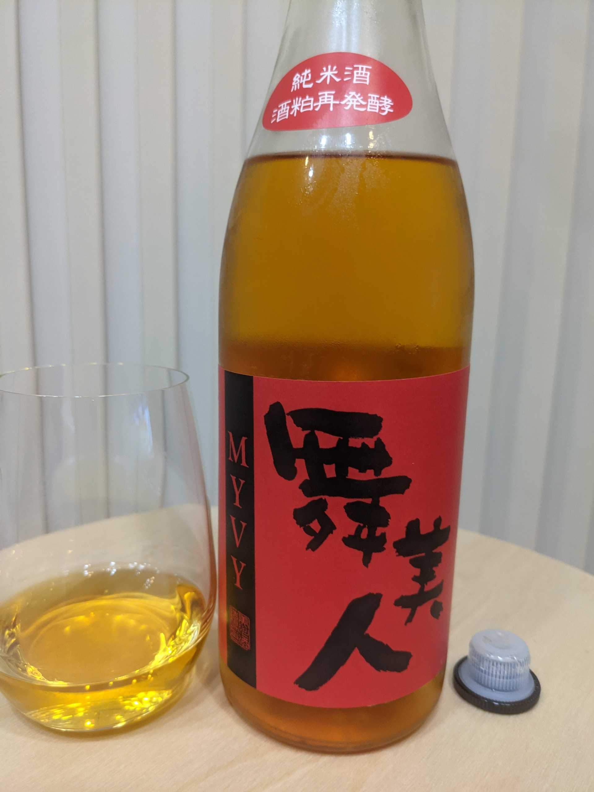 舞美人 純米酒 MYVY(まいびー) 酒粕再発酵 製造者:美川酒造場(福井県福井市) 原材料名:米(国産)米麹(国産米) 精米歩合:60% アルコール分:17度以上18度未満 製造年月:2021.07 説明:濃酵で濃厚な味わいと酸味のバランスが楽しめるお酒です。舞美人は、伝統の道具で手間と時間をかけて手造りで醸しています。 地元のお酒 かなり特殊なお酒ですね。 ほとんど酒の粕になったようなものを数日かけてゆっくり搾り出したとのこと。 甘みも強く、貴醸酒かと思うぐらい。 酸味も高め、味わいもとろみがあり、色も杏子のよう、全てが凝縮した日本酒です。 舞美人は、蔵付き酵母で醸造していると聞いたことがあります。香りは少し酢っぽくもあるのですが口に含むとそれほど気になりません。 それほど出回っている商品でもないでしょう。地元ならではの商品です。 【日本酒】舞美人(まいびじん)山廃純米 酒粕再発酵酒 MYVYまいびー 720ml