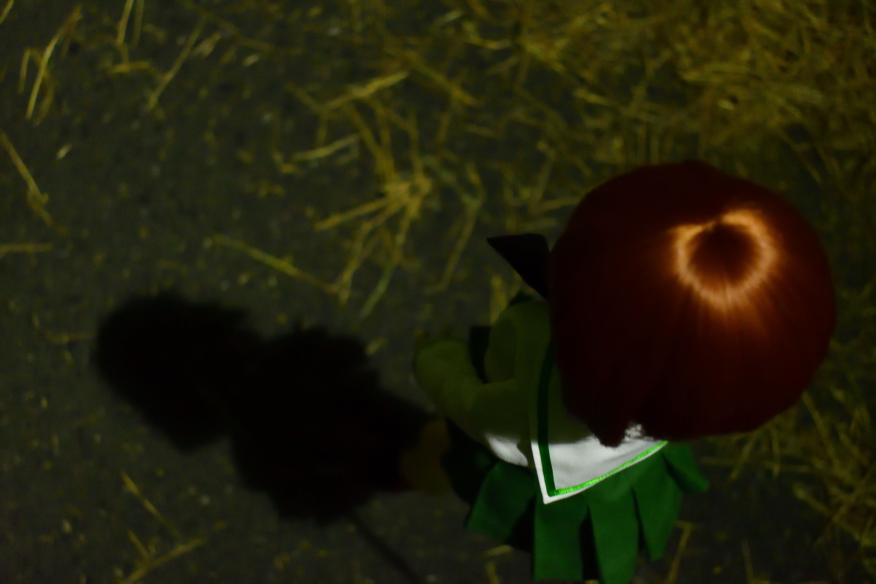 いろんなものの配置がジャストフィットでした。特に枯れ草と影がうまい具合にみほさんを取り囲んでいたことです。それがボケてなんだか妙に禍々しい雰囲気になり…。