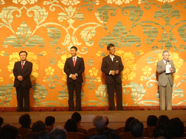 議員説明会がありました。昨日配達できなかった、しんぶん赤旗日曜版を午前中に配り、午後からの議員説明会があるので食堂で早めの昼食。その後、議会まで控室でデスクワークをしました。本会議場では、いつもの理事席に「議会基本条例」特別委員会の議員が座り、その他の議員は自席にて報告を受け、質問するという形式です。私は委員ではないので、自席から数点の質問をさせてもらいました。委員会の傍聴は、モニターでしていましたが、「暫時休憩」時の様子は映し出されませんので、分かりずらかったのですが、今日の報告でその一端を垣間見ることができました。会派内での意見の統一がなされておらず、同じ政党の議員どうして対立する場面があり、基本条例の制定までは、さらに時間がかかりそうです。また、いつも欠席や遅刻の多い議員が、今日も欠席をしていることが気になります。日本共産党は、毎週の議員団会議のほかにも重要な事柄は絶えず意思統一しているので、このような場面は出てきません。その後、商工会議所の「新春互礼会」の会場へ、 指定された席は何と、一番前の中央。写真のアングルが取りやすい席でしたが、このことが逆に…。実は4時からの互礼会の後、5:30から野崎9条の会の駅頭宣伝でマイクを持ち、そのままJR野崎駅から電車に乗って天神橋の近くにある「エルおおさか」へ行こうと考えていたのですが、互礼会の進行状況によっては中座しにくい(目立つ)席に座らされてしまったのです。そして、一部の式典が終わったのが5時過ぎで、乾杯をして席から離れやすくなったので、数人と名刺交換をして会場を後にしました。でも、すでに時間はなく、9条の会の宣伝には出られません。原チャでJR住道駅へ向かい電車に飛び乗りました。小雨が降り出しましたが、傘を取りに帰る時間もないので、天神橋商店街で、折りたたみ傘を買うかどうか判断しようと考えながら電車を降りたのですが、雨が降った形跡すらありませんでした。大東市だけ????? おかげで、天神橋からの夜景を楽しみながら会場へ。京橋共同法律事務所友の会30周年記念行事の実行委員会へ参加しました。今月の24日に貧困問題をテーマとしたパネルディスカッションを計画しています。会議後は自宅へ戻り、ワゴン車に乗ってマンションへ帰りました。明日は、大勢の人を乗せて会議に出かけるので、そのための準備です。