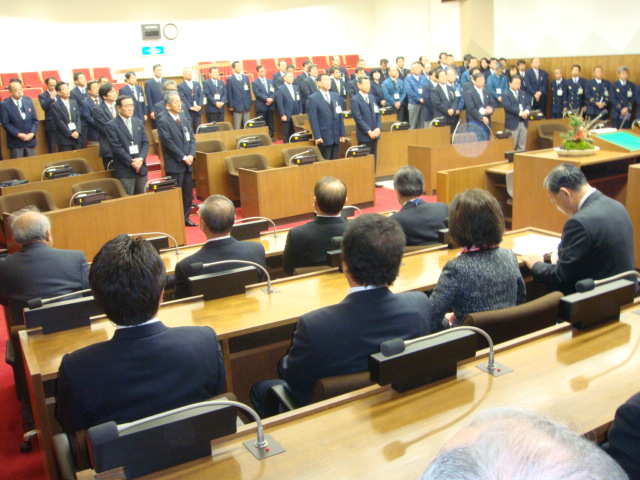 2010年初出式今日は市役所の初出式がありました。お正月休みが昨日で終わったわけですが、実は、昨日は月曜日ということもあって、例年にないほど多くの市民が市役所へやってきていました。市役所の休み期間は広報誌などでも周知されていたのですが、月曜日からやっているだろうとの憶測があったようです。このことから、今年の12月の終業は28日からと、1日繰り上げるそうですが、そうすると2011年の仕事始めは、また火曜日になります。果たしてどうなるでしょうか。式典は、議場で行われ、いつもと反対に、理事者席に議員が座っています。 各課の部課長たちに、市長の訓示・議長の挨拶があるのですが、演台の横に、お正月らしい盆栽が置かれていました。議会事務局の計らいのようです。初出式終了後、にわかに慌ただしくなり、各会派の代表が集まったり、閉会中の小委員会のことや8日の全議員協議会のことなどが決められて行きました。夕方近くになってようやく一息ついて、今度は地区委員会総会のために、一度マンションへ戻ってから守口へ。寒気団が入り込み、各地で雪を降らせているそうですが、大東市では、雪は降らないものの、厳しい寒さで、原チャに乗ると寒さが身にしみます。会議が終わって、帰る頃にはさらに寒くなった上に空腹なので、ブルブル震えてしまいます。こんな時のために脂肪を蓄えているはずなのに、役に立ちませんでした。積雪があるとタイヤがスリップして原チャに乗れません。雪国では、どうしているのかな?スタッドレスなどの、冬用のタイヤがあるのでしょうか?雪が降らないように祈りつつ、無事に帰宅できました。