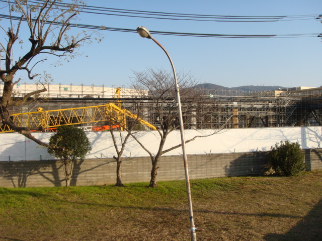 日本共産党・旗開きそして、初宣伝!当初の計画では午前10時から3人の議員団がそろって、市内を回る予定でしたが、中央委員会の旗開きがCS放送で視聴できるということで、急きょ地区委員会へ向かいました。翌日には、しんぶん赤旗でも報道されるし、HPの動画配信もありますが、大勢の仲間と、リアルタイムで志位委員長の挨拶を聞くのも捨てがたい。旗開きを終えてからの宣伝になったので、大東市に帰る途中で昼食を済ませ南部・東部・北部・中部・西部と、宣伝カーを走らせました。北部の後援会長とすれ違った時に写真を撮ってもらったのですが古崎市議のカメラで撮影してもらったので、アップできずに残念ですが、10号の議会報告版に写真を入れていますので、議員団のHPからご覧くだされば幸いです。途中、いつも市役所から見えている大型クレーンが働いている場所近くを通ったので、今度は自分のデジカメで写真を撮りました。 クレーンが見当たらないので???でしたが、近づいてみると、フェンス越しに倒されていました。お正月休みの間に倒壊しないようにという配慮からでしょう。奥には建築中の建物が見えますが、さて、何がたつのでしょうか?宣伝が終わって、市役所へ行きましたが、今日までお休みのため、宿直室へ行って鍵を開けてもらいます。議員団の控室に入り、PCを立ち上げて、議会報告版の編集。お正月ということで、〆切が早まり、今日中に仕上げなければなりません。途中で、「誤注文でどら焼きが大量にある。買うてくれへんか」という珍しい相談に、「ほな、20個ほど貰うわぁ」と、大好物にありつけることに。 こいつは春から縁起がいいぜ!とばかりに早速三つほど食べたのですが、直後からの胸やけに胃薬を飲む羽目になりました。無事に原稿を仕上げ、守口まで届けてから、神戸の末娘が来ているというので、自宅へ帰りました。誰に似たのか、我が家の子どもたちは全員が甘いもの好き。残った17個のどら焼きは、瞬く間にお腹の中へ。いやいや、実は半分以上は末娘の同僚へのお土産になりました。一人、マンションに向かう時に「しまった、もう少し確保しておけば」と、後悔しましたが、太ることを考えると、我慢のしどころですね。