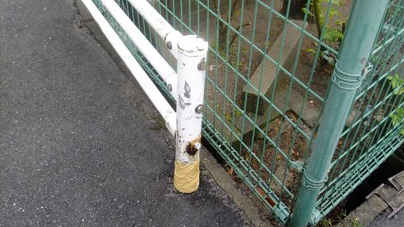 取り付けたばかりなのに… GW前の特別体制として「議会報告版の編集作業」を早めに進めなければなりません。また、月末に差し掛かっているので、集金などの訪問もしなければならず、とよあし市議の手を借りて「記事」を埋めていきます。 午後からは地域支部の方と宣伝カーに乗って2時間ほど回りました。 参議院選挙直前というわけでもないのに、車を止めてスポット演説をしていると車の窓を開けて「頑張ってや」と声掛けしていただいたり、手を振って下さったり。「アベノミクスの5本の毒矢」と「憲法改悪許すまじ」と訴えました。 宣伝カーを降りて、今度は別のセンターに行くと、訪問の準備をしてKさんが待っていてくださいました。 訪問途中で出会った人たちから「公園にスロープができ、手すりをつけてくれたのはいいけれど、こどもたちが乗って遊んでいるうちにネジが外れて危険」という指摘がありました。 上段の手すりの取り付け部分を拡大してみると… なるほど、外れそうになっています。 早速公園を管理する課に電話をすると、工事を発注したのは教育委員会だそうですが「すぐに現場を見に行きます」と、応急処置をしに来てくれました。 今後、業者に連絡して「こどもの遊ぶ場所だから」と、より確実に取り付ける方法を検討して改善するそうです。 この他にも路面舗装の要望が出されたりしましたが、こちらは両側に立つ家や土地の所有者の承諾をいただかないといけないので、もう少し時間がかかってしまいます。 雨上がりの日差しの中でしたが、さつきのきれいなおうちの玄関先から、やや逆光気味の写真を撮らせてもらいました。満開です。 夕方に差し掛かっていたので、訪問件数は15件程度と少なめでしたが、地域を歩くことで、市民の意見や要望などを聞くことができました。