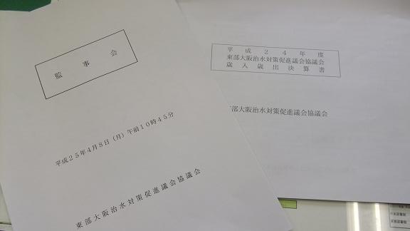 東部治水・幹事会 今日は東部治水の監事会がありました。会場は東大阪市役所庁舎。今回はいつものような会議や視察といったものではなく、次期総会にかける「会計報告書」の監査などが主なもの。 橋下知事就任後のPJで、大幅に予算カットされてしまったので、予算規模は多くはありませんが、しっかり監査をしなければなりません。 支出額と領収書を比べたり、支出内容を精査したり…。その中で2年連続で繰越金の額が、やや多めであることを感じたので、そのことを指摘しましたら、幹事会でもテーマになったとのことでした。 単年度決算とすれば、使い残しは好ましくありません。ましてや2年連続となればなおさらですが、何らかの目的を持って大きなイベント的な使途を考えているのであれば、そのことを全体の「総会」などで提起すべきで、と指摘しました。 幹事会と監事会、同じ読み方でもあてられる漢字は違っています。書類は、東部大阪治水対策促進協議会監事会です。 今日は東大阪市役所の西側の窓からの景色をパチリ。 今までは東側の生駒山方面ばかり移していましたから。 このような、人工的なものばかりの景色より、やっぱり山が見えた方が、気持ちを落ち着かせてくれるようです。高速道路のICなど、人造美を否定するわけではありませんが…。 大東市役所に戻り、昼食後は机周りの整理を中心にデスクワーク。すぐに書類が溜まってしまうので、PC付近が乱雑になってしまいます。 夜の会議前に一度マンションへ戻り、必要な書類をおろしてから会議場へ向かいました。 マンションの書類もこうして増え続けてしまうので、いつか時間を作って整理整頓しなくては!!!