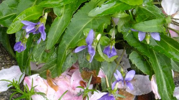 回転ずし桜の花びらの吹きだまり。そこにはスミレの花が咲いていました。 午前中に門真市で会議が予定されていましたが、地域の後援会総会があったので、そちらへ出席することに。 お会いできると思っていた方が急きょ入院されてしまったとか、残念なニュースもありましたが、参加された方は次々と議事をこなし、事務局体制などを決めて、総会は終了。 っと、ここで「お花見モード」に突入! の予定でしたが、あいにくの天気が続き、既に桜は「しべ桜」に。引き続き室内で昼食を頂きました。 総会は1時間でしたが、こちらはその2倍! 楽しいおしゃべりや近況報告などが2時間以上続いたのでした。 途中で吉井よしこさんが来てくれて、国政報告もありましたが、最後までご一緒してくださいました。 夕方、次女が実家に帰ってきているので、兄弟が集まろうということになり、そろって回転ずし店へ。 人数が多すぎて二つのテーブルに分かれて座りましたが、おちびちゃんたちはお互いのテーブルが気になる様子。 お箸が使えない悠君は一生懸命手でつかんで口へ運んでいます。何回も入退院を繰り返したころには見られなかった食欲がようやく戻ってきたようで、一安心です。帰りにはスイーツを求めて、次女がアルバイトをしていたお店に立ち寄り、実家で頂きました。 ケーキを頂いた後は、お絵かき大会に。晃太郎君に負けじと悠君も書いていましたが、晃君のお母さんが書いてくれた「バイキンマン」が一番のお気に入りのようでした。