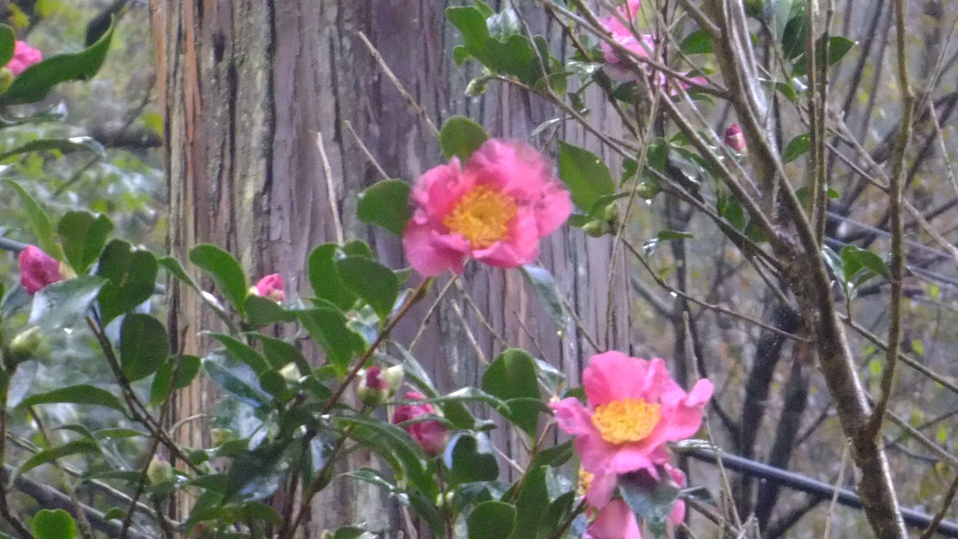 山茶花が咲き出しました。昨夜、電車でやってきた妻が早朝にワゴン車で帰阪しました。長女がワゴン車を使いたいから・・・と言うのがその理由。道路が込み合う前に妻は出発。昨夜の雨も上がり、ドライブ日和?気をつけて お帰りくださいませ。今度は関西電力に委託された業者が、送電線周りの樹木の選定作業にやってきました。本来6月ころに来る予定だったのだが、台風の被害が出てからという、遅すぎる作業です。パッカー車もついて来て、次々に枝を飲み込んでしまいます。立ち枯れした松の木も切るとおっしゃっていたけれど、切らずに帰ってしまいました。農土花と道路の境界に立つ杉の枝も、切らずに帰ったので、仕方がない、自分で切り落としました。複数の枝元からバッサリ! 綺麗な模様ができました。お腹が空いたので妻が湯がいて持ってきてくれた枝豆を。先日、日体大の後輩たちから連絡があり、丹波笹山の黒豆を送りますとのことだったので、美味しくいただきました。卒業以来音信普通だった私を、ネット検索で見つけてくれた上にこんな素敵なプレゼントまでいただけるなんて、感謝です。電波の通じる場所まで行って、御礼の電話をかけると、今度会いたいね!と言う話にわくわくしました。今日は高所作業。先日のこともあり、危険回避の策として、2連はしごのトップにかけるロープにゆとりを持たせました。重たい枝を切り落としたときの反動で、はしごが外れたり跳ね飛ばされるのを防ぐためです。そしてその策は、見事成功。思ったとおり幹が跳ね上がりましたが、今日は想定内ですから、怖い目にあわずにすみました。後は切り刻んで運び、燃やして処理します。道路に突き出していた幹の遠景。手前が焚き火の煙です。昨夜までの雨で濡れていたので、燃やすのに苦労しました。炎が安定したのはかなり立ってからです。でも、杉の葉にも3色のもみじがあることが分かりました。赤・緑・黄色と、とても綺麗!ススキも3色そろえて花瓶にさしてみました。右手に椿が、さらに右奥に山茶花が秋から冬へとその花を楽しませてくれることでしょう。ヘビイチゴの収穫。外側の硬い種を落としてジャムにしてから・・・パンに乗せていただきました。さぁ、もう一分張りです。綺麗なきのこも見つけました。柄のないものや柄のついたもの・・・でも、怖いので食べませんでした。と言うより、夕食はへの河童さんでラーメンが食べたかったから。途中の河原で土嚢袋10杯分の砂を採取して軽トラに積んだまま温泉へ。農土花に戻る途中でまたもやウサギ。そしてキツネに出会いました。最後は満月。都会の明かりに邪魔されずススキ越しに見る満月。う~ん 至福のひと時ですね。